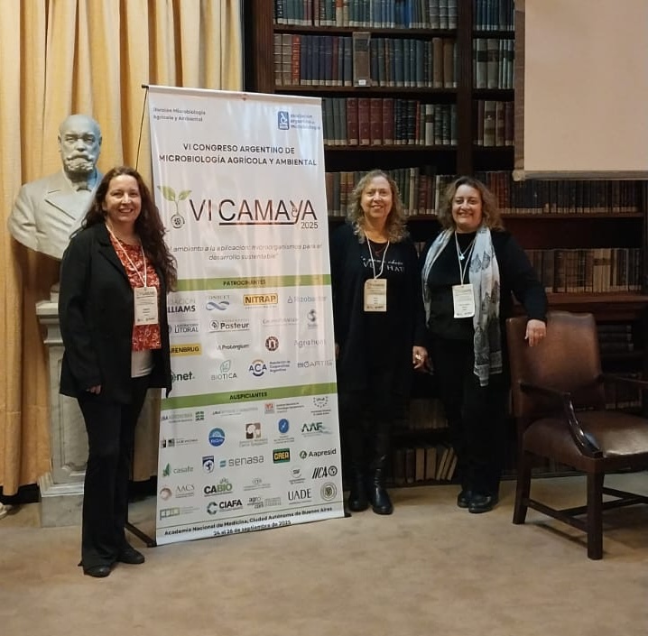 Las investigadoras de nuestro instituto, Dra. Fernanda Covacevich, Dra. Fabiana Consolo y Dra. Corina Berón, participaron como disertantes en mesas redondas del VI Congreso Argentino de Microbiología Agrícola y Ambiental (CAMAYA 2025), donde debatieron junto a referentes nacionales e internacionales los desafíos presentes y futuros de la biotecnología aplicada a la producción agrícola y sanidad humana.